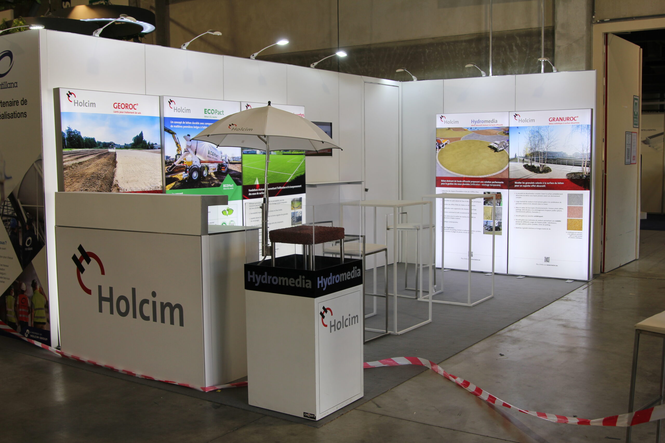 Bouw van een stand van 22 m² voor Holcim op de beurs Municipalia – Le salon des Mandataires in de Wex in Marche-en-Famenne.