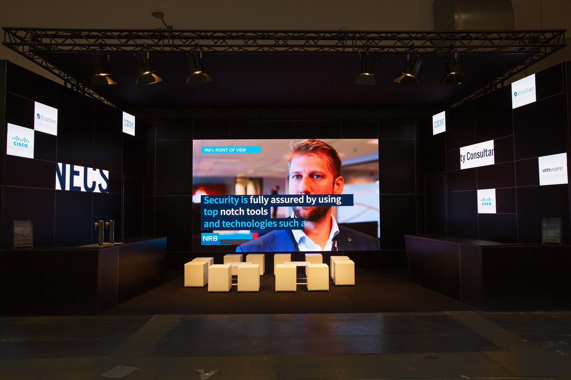 Speciaal voor het evenement werd een hangende standaard gemaakt met de naam van de stand.
